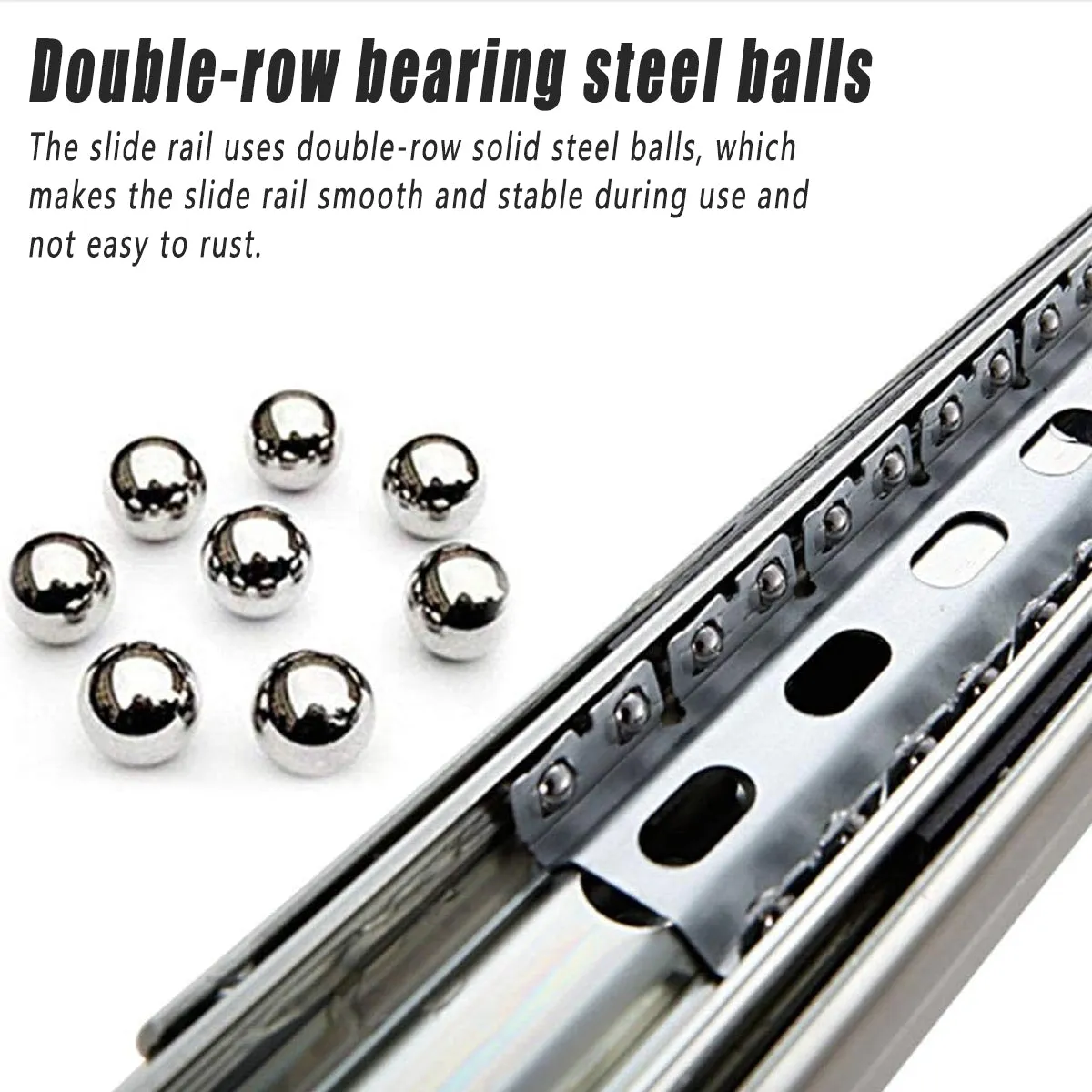 Load-bearing capacity up to 120KG Carbon steel material, thick material, precision production, no movement after the sliding rail shrinkage closed, greatly improve the stability Surface sealing blue plating treatment Good rust resistance and acid resistance, not afraid of moisture, salt spray test without red embroidery?