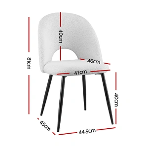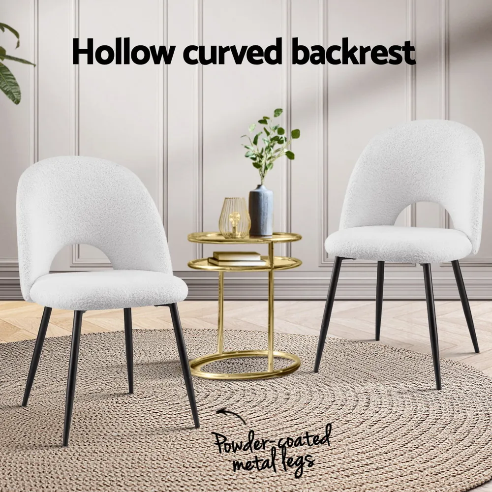Enhance your living space with Artiss contemporary accent chair featuring premium sherpa fabric upholstery. The ergonomic curved backrest with hollow design promotes airflow, paired with high-density foam cushions for lasting comfort. Sturdy powder-coated steel legs with non-slip protectors ensure stability on various floor types. Ideal for lounges, reading nooks or bedroom seating, this versatile chair supports up to 150kg. Modern white colour complements most décors. Simple assembly with included instructions. Spot-clean with damp cloth. *Actual colour may vary slightly between monitor displays.
