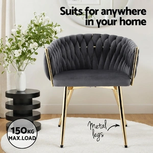 Wine, dine, and entertain guests with our meticulously designed Artiss dining chairs. They make a luxurious addition to any dining space and will make your guests envious of your gorgeous dining ambience. Not just for your dining room, these dining chairs are sure to make a statement in your study room, living room, and dressing room. Their versatility and ultra-modern design make them stand out. Incredibly stylish and sophisticated, our Artiss dining chairs feature inner solid wood construction with plush velvet upholstery and a hand-woven backrest that ensures lasting quality. It comes with solid steel legs with an anti-slip feet pad for ultimate stability and to keep your floors scratch-free. The dining chairs flaunt plush seats made with high-resilience foam that offer incredible comfort and support, and the cushioned back support with comfortable armrests allow you to dine with great comfort. Our dining chairs can hold up to 150kg weight, and their reinforced steel fixings make them super stable and reliable. Our Artiss dining chairs are certainly a big bang for your buck. Bring home this luxurious set of dining chairs without any hesitation.