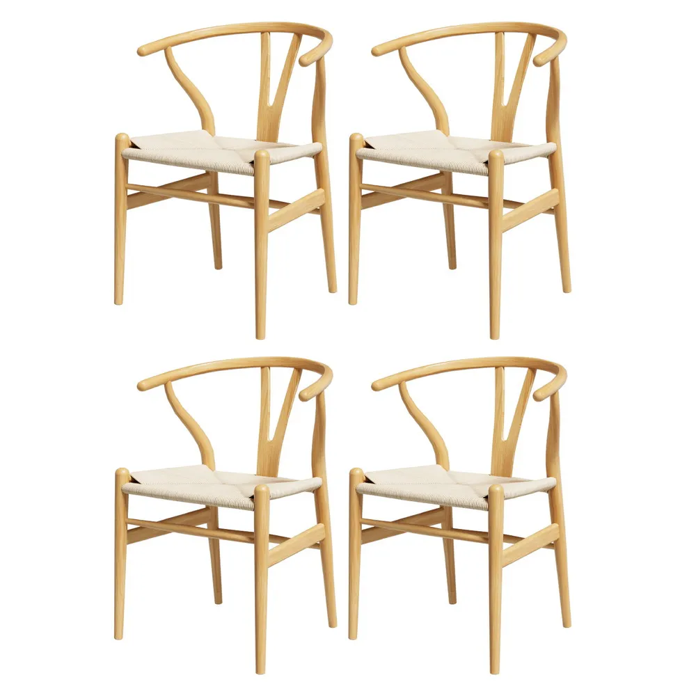 Dine in style with the Artiss Wishbone Dining Chair. Expertly crafted by skilled artisans, this chair features a contemporary silhouette that suits any interior style. The burnished rubberwood frame ensures a strong and durable structure that can withstand daily use, while the kraft paper seat offers a unique and stylish touch. The seat is ergonomically designed to provide maximum comfort, with its curved shape and smooth finish. The backrest features the classic 'wishbone' shape, which provides both form and function, ensuring proper posture and support. The braided seat is designed to be comfortable, elastic and breathable, and has a weight capacity of 120kg. Anti-slip floor protectors keep the chair sturdy and prevent scratches on your floors. The combination of rubberwood and kraft paper makes this chair lightweight, comfortable, and visually appealing. Brighten up your home décor with the Artiss Wishbone Dining Chair today.