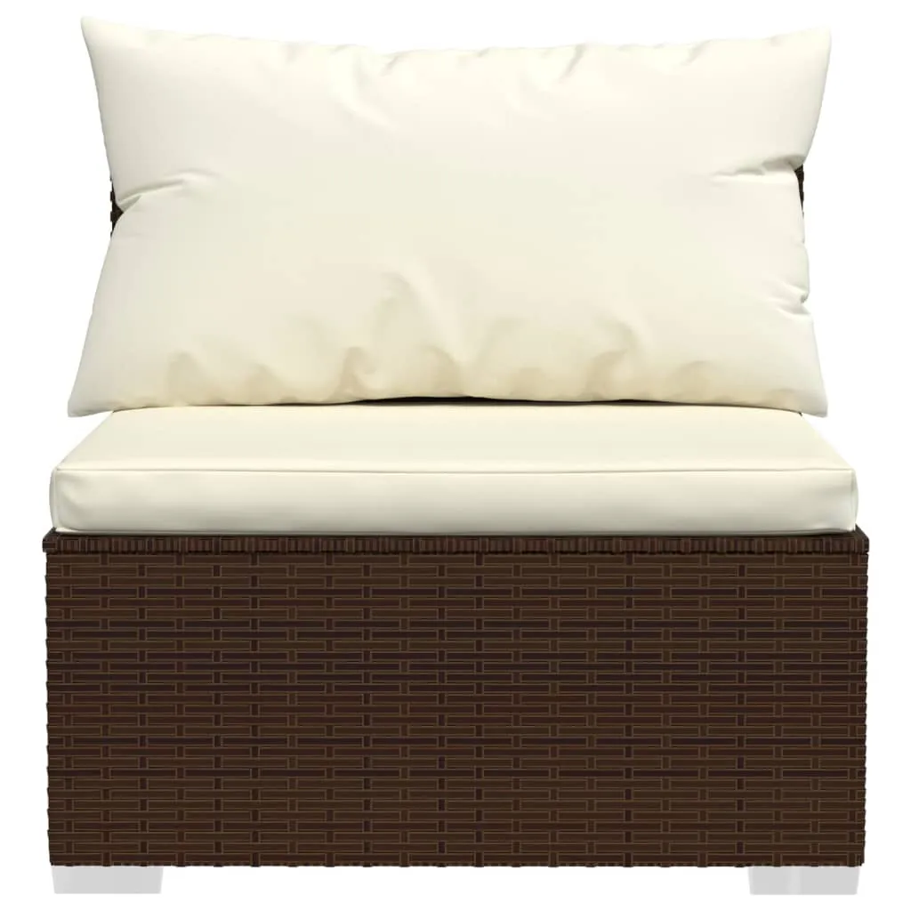 Relax and enjoy your leisure time with this trendy garden lounge set! It is meant to meet a variety of your different needs. Sturdy frame: This patio seat features a sturdy powder coating steel frame and plastic chrome feet, which is highly durable.Premium material: The garden sofa is designed with water-resistant PE rattan, making it easy to clean, hard-wearing and suitable for daily outdoor use.Modular design: The modular design also makes it possible to place the set in any arrangement or combine them with other modular segments to meet your needs.Comfortable cushions and pillows: The thickly padded and removable cushions and pillows provide optimal comfort for your outdoor sitting. Note:In order to extend the life of your outdoor furniture, we recommend you to clean it regularly and do not leave it outdoors without protection unnecessarily.Clean: Use a mild soap solution.Storing: If possible, store in a cool, dry place indoors. If the product is stored outdoors, protect it with a waterproof cover. Wipe and dry the excess water or snow from flat surfaces after a rain or snowfall. Allow sufficient air circulation to avoid moisture-related damage.