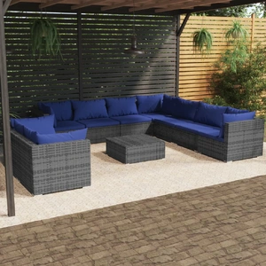 Relax and enjoy your leisure time with this trendy poly rattan garden lounge set! It is meant to be an excellent choice for you to take a breather from your hectic life. Sturdy and lightweight frame: This patio lounge set features a sturdy powder coating steel frame and plastic chrome feet, which is highly durable. Thanks to its lightweight construction, the sofa set is easy to move.Water-resistant material: Made of water-resistant material, the garden sofa set can withstand humidity and rainy weather. It can also be easily cleaned with a damp cloth when needed.Modular design: The modular design makes it possible to place the set in any arrangement or combine them with other modular segments to meet your needs.Comfortable cushions: The thickly padded and removable cushions provide optimal comfort for your outdoor sitting. Note:In order to extend the life of your outdoor furniture, we recommend you to clean it regularly and do not leave it outdoors without protection unnecessarily.Clean: Use a mild soap solution.Storing: If possible, store in a cool, dry place indoors. If the product is stored outdoors, protect it with a waterproof cover. Wipe and dry the excess water or snow from flat surfaces after a rain or snowfall. Allow sufficient air circulation to avoid moisture-related damage.