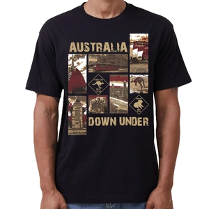 Celebrate the spirit of Australia with our 'Down Under' souvenir T-shirt. This unisex tee captures the essence of Australia's iconic landmarks and wildlife in a collage of images that evoke the adventure and beauty of the land. Perfect for locals and travelers alike, it's a wearable memento of your time in the great Southern Land.