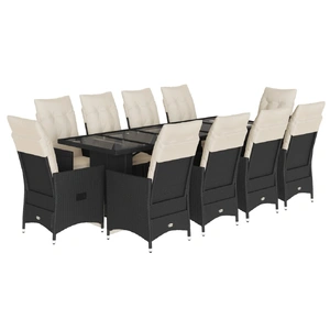 Enjoy a coffee or have a chat with your family and friends in the garden, backyard, or on the balcony with this comfortable bistro set! Durable material: PE rattan, also known as poly rattan, is a strong, low-maintenance synthetic material that looks like natural rattan. It's lightweight, easy to clean, and commonly used for outdoor furniture due to its durability and weather-resistant properties.Adjustable backrest and footrest: This garden seat has a handle. You can adjust the backrest and footrest to any position by pulling the handle, and quickly return it to its original position.Comfortable seat experience: This outdoor furniture, complete with thickly padded cushions, offers a comfortable seating experience.Removable and washable cover: These seat cushions feature removable covers for easy washing and maintenance. The back cushions have a flap at the back for easy attachment to the backrests.Glass tabletop: The outdoor table's top is made from strong and durable tempered glass, making it easy to clean with a damp cloth and adding a touch of elegance to your outdoor space. Good to know:To make sure your outdoor furniture stays beautiful, we recommend protecting it with a waterproof cover.