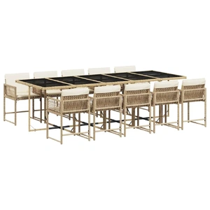 This garden dining set is a great choice for al fresco dining or just relaxing in the garden, backyard, or on the patio. Durable material: PE rattan, also known as poly rattan, is a strong, low-maintenance synthetic material that looks like natural rattan. It's lightweight, easy to clean, and commonly used for outdoor furniture due to its durability and weather-resistant properties.Compact storage: These chairs have a flap backrest that can be folded down, making it easy to store them under the table. When folded, they neatly fit under the table, forming a space-saving cube shape.Comfortable seat experience: This outdoor furniture, complete with thickly padded cushions, offers a comfortable seating experience.Removable and washable cover: These seat cushions feature removable covers for easy washing and maintenance. The cushion covers have a flap at the back for easy attachment to the backrests.Glass tabletop: The outdoor table's top is made from strong and durable tempered glass, making it easy to clean with a damp cloth and adding a touch of elegance to your outdoor space. Good to know:To make sure your outdoor furniture stays beautiful, we recommend protecting it with a waterproof cover.
