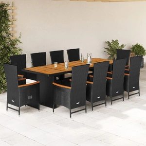 This garden dining set is a great choice for al fresco dining or just relaxing in the garden, backyard, or on the patio. Durable material: PE rattan, also known as poly rattan, is a strong, low-maintenance synthetic material that looks like natural rattan. It's lightweight, easy to clean, and commonly used for outdoor furniture due to its durability and weather-resistant properties.Adjustable backrest and footrest: This garden seat has a handle. You can adjust the backrest and footrest to any position by pulling the handle, and quickly return it to its original position.Comfortable seat experience: This outdoor furniture, complete with thickly padded cushions, offers a comfortable seating experience.Removable and washable cover: These seat cushions feature removable covers for easy washing and maintenance.Stable and easy-to-clean tabletop: This garden table has an acacia wood top that is sturdy, durable, and easy to clean with a damp cloth. Good to know:To make sure your outdoor furniture stays beautiful, we recommend protecting it with a waterproof cover.