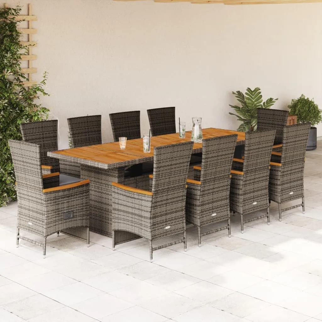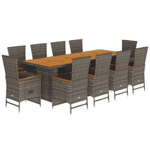 This garden dining set is a great choice for al fresco dining or just relaxing in the garden, backyard, or on the patio. Durable material: PE rattan, also known as poly rattan, is a strong, low-maintenance synthetic material that looks like natural rattan. It's lightweight, easy to clean, and commonly used for outdoor furniture due to its durability and weather-resistant properties.Adjustable backrest and footrest: This garden seat has a handle. You can adjust the backrest and footrest to any position by pulling the handle, and quickly return it to its original position.Comfortable seat experience: This outdoor furniture, complete with thickly padded cushions, offers a comfortable seating experience.Removable and washable cover: These seat cushions feature removable covers for easy washing and maintenance.Stable and easy-to-clean tabletop: This garden table has an acacia wood top that is sturdy, durable, and easy to clean with a damp cloth. Good to know:To make sure your outdoor furniture stays beautiful, we recommend protecting it with a waterproof cover.