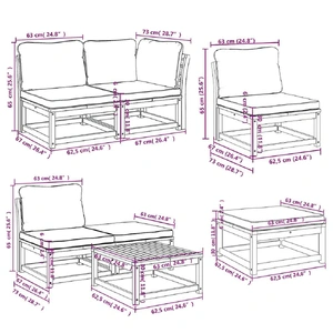 This wooden garden lounge set with cushions has an elegant design and is a great choice for relaxing and enjoying in the garden or patio. Solid acacia wood: Solid acacia wood is a beautiful natural material. Acacia wood is a tropical hardwood, which is dense, sturdy, and durable.Comfortable seat experience: The backrest and the thickly-padded cushions make the garden sofa set more comfortable to sit on.Slatted design: The slatted design of the wooden lounge set effectively prevents water from pooling, ensuring that the seat remains dry and free from potential rot.Modular design: This outdoor furniture set has a modular design, making it completely flexible and easy to move around, so you can create a customised outdoor furniture arrangement. Good to know:To make sure your outdoor furniture stays beautiful, we recommend protecting it with a waterproof cover.