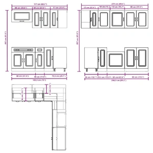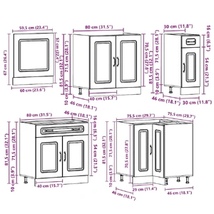 - 1 x kitchen corner base cabinet: 75.5 x 75.5 x 81.5 cm (W x D x H)