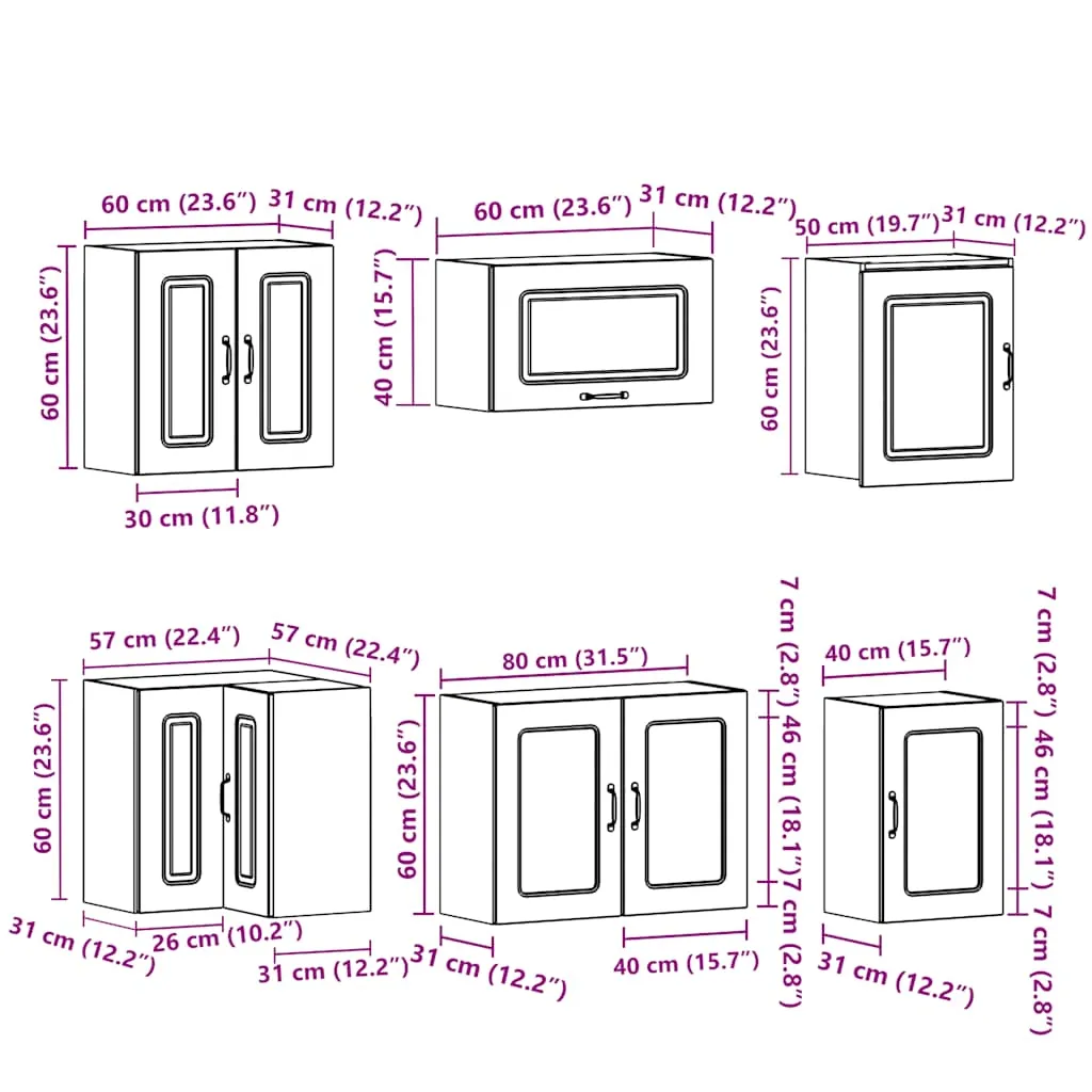 - 1 x kitchen wall cabinet: 80 x 31 x 60 cm (W x D x H)
