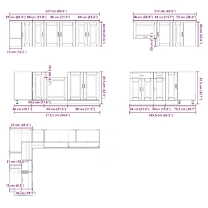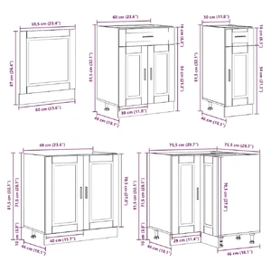 - 1 x kitchen corner base cabinet: 75.5 x 75.5 x 81.5 cm (W x D x H)