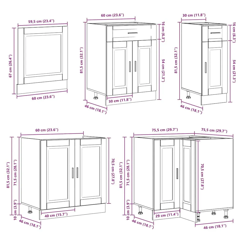 - 1 x Sink base cabinet: 80 x 46 x 81.5 cm (W x D x H)