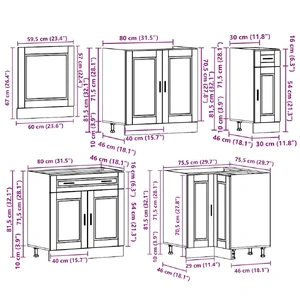 - 1 x kitchen corner base cabinet: 75.5 x 75.5 x 81.5 cm (W x D x H)