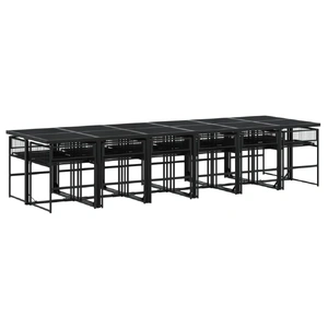 This garden dining set is a great choice for al fresco dining or just relaxing in the garden, backyard, or patio. Durable material: PE rattan, also known as poly rattan, is a strong, low-maintenance synthetic material that looks like natural rattan. It's lightweight, easy to clean, and commonly used for outdoor furniture due to its durability and weather-resistant properties. Glass tabletop: The outdoor table's top is made from strong and durable tempered glass, making it easy to clean with a damp cloth and adding a touch of elegance to your outdoor space. Compact storage: These chairs have a flap backrest that can be folded down, making it easy to store them under the table. When folded, they neatly fit under the table, forming a space-saving cube shape. Comfortable seat experience: This outdoor furniture, complete with thickly padded cushions, offers a comfortable seating experience. Good to know:To make sure your outdoor furniture stays beautiful, we recommend protecting it with a waterproof cover.