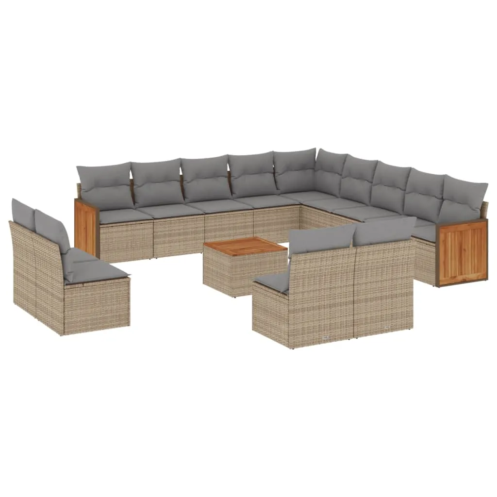 This garden sofa set is the perfect addition to your backyard, terrace, or patio, providing a comfortable and inviting space for chatting with family and friends or simply relaxing and enjoying the outdoors. Durable material: PE rattan, also known as poly rattan, is a strong, low-maintenance synthetic material that looks like natural rattan. It's lightweight, easy to clean, and commonly used for outdoor furniture due to its durability and weather-resistant properties.Comfortable seat experience: This outdoor furniture, complete with thickly padded cushions, offers a comfortable seating experience.Stable and easy-to-clean tabletop: This garden table has an acacia wood top that is sturdy, durable, and easy to clean with a damp cloth.Removable and washable cover: These seat cushions feature removable covers for easy washing and maintenance.Modular design: This outdoor furniture set has a modular design, making it completely flexible and easy to move around, so you can create a customised outdoor furniture arrangement. Good to know:To make sure your outdoor furniture stays beautiful, we recommend protecting it with a waterproof cover.