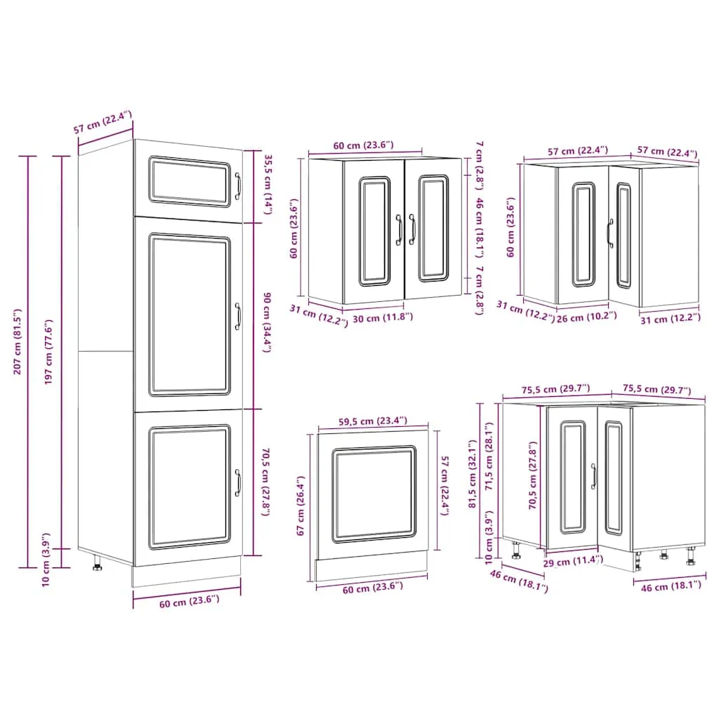 - 1 x kitchen corner base cabinet: 75.5 x 75.5 x 81.5 cm (W x D x H)