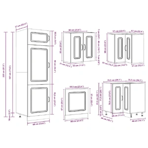 - 1 x Kitchen cupboard: 60 x 57 x 207 cm (W x D x H)