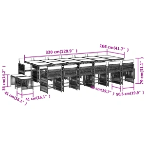 This garden dining set is a great choice for al fresco dining or just relaxing in the garden, backyard, or patio. Durable material: PE rattan, also known as poly rattan, is a strong, low-maintenance synthetic material that looks like natural rattan. It's lightweight, easy to clean, and commonly used for outdoor furniture due to its durability and weather-resistant properties.Compact storage: These chairs have a flap backrest that can be folded down, making it easy to store them under the table. When folded, they neatly fit under the table, forming a space-saving cube shape.Comfortable seat experience: This outdoor furniture, complete with thickly padded cushions, offers a comfortable seating experience.Removable and washable cover: These seat cushions feature removable covers for easy washing and maintenance. The cushion covers have a flap at the back for easy attachment to the backrests.Glass tabletop: The outdoor table's top is made from strong and durable tempered glass, making it easy to clean with a damp cloth and adding a touch of elegance to your outdoor space. Good to know:To make sure your outdoor furniture stays beautiful, we recommend protecting it with a waterproof cover.