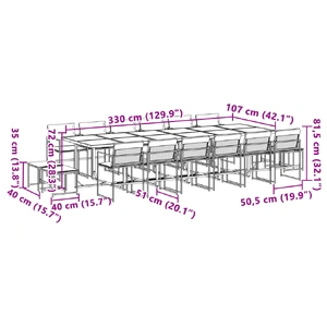 This garden dining set is a great choice for al fresco dining or just relaxing in the garden, backyard, or on the patio. Durable and long-lasting: Textilene fabric is appreciated for its durability, water and fade resistance, easy maintenance, and protection against UV rays and mould, making it an ideal choice for outdoor furniture and shade structures.Compact storage: These chairs have a flap backrest that can be folded down, making it easy to store them under the table. When folded, they neatly fit under the table, forming a space-saving cube shape.Removable and washable cover: These seat cushions feature removable covers for easy washing and maintenance.Glass tabletop: The outdoor table's top is made from strong and durable tempered glass, making it easy to clean with a damp cloth and adding a touch of elegance to your outdoor space.Robust and stable frame: The powder-coated steel frame ensures that the garden furniture is strong and stable for daily outdoor use.Good to know:To make sure your outdoor furniture stays beautiful, we recommend protecting it with a waterproof cover.