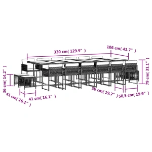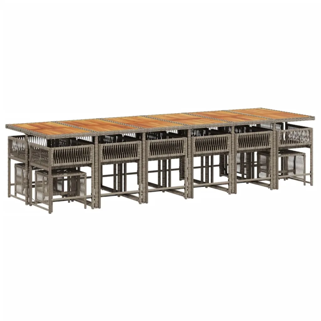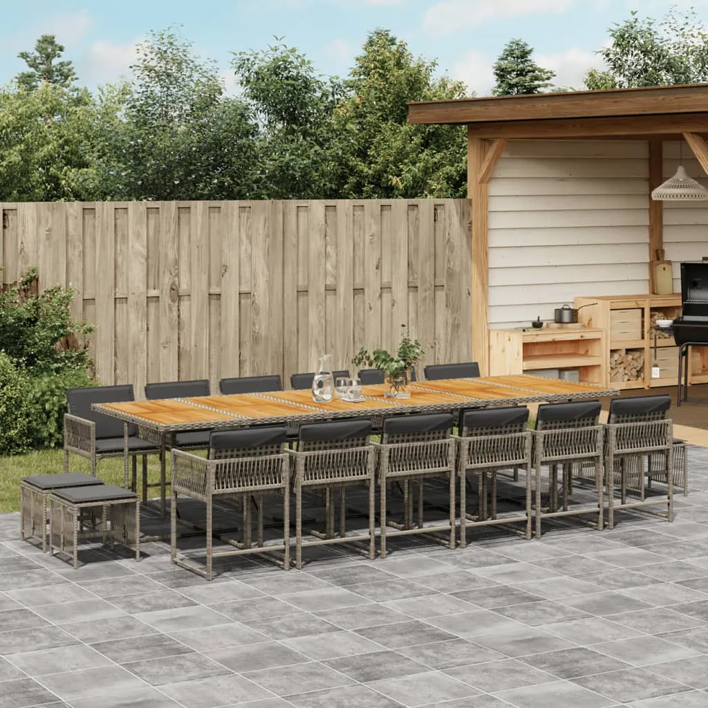 This garden dining set is a great choice for al fresco dining or just relaxing in the garden, backyard, or on the patio. Durable material: PE rattan, also known as poly rattan, is a strong, low-maintenance synthetic material that looks like natural rattan. It's lightweight, easy to clean, and commonly used for outdoor furniture due to its durability and weather-resistant properties.Compact storage: These chairs have a flap backrest that can be folded down, making it easy to store them under the table. When folded, they neatly fit under the table, forming a space-saving cube shape. Additionally, the stools can also be stored under the chairs, further maximizing space efficiency.Comfortable seat experience: This outdoor furniture, complete with thickly padded cushions, offers a comfortable seating experience.Removable and washable cover: These seat cushions feature removable covers for easy washing and maintenance. The cushion covers have a flap at the back for easy attachment to the backrests.Stable and easy-to-clean tabletop: This garden table has an acacia wood top that is sturdy, durable, and easy to clean with a damp cloth. Good to know:To make sure your outdoor furniture stays beautiful, we recommend protecting it with a waterproof cover.