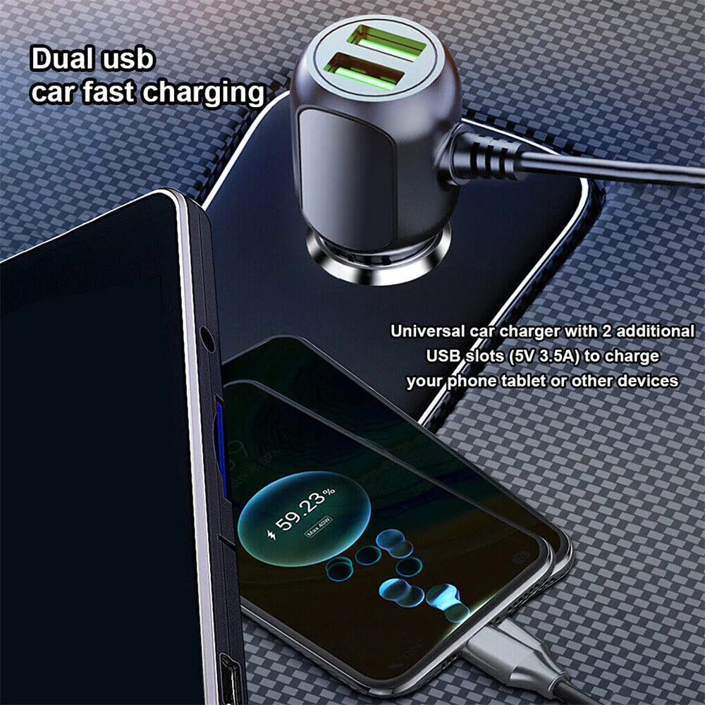 Dual USB: The dash cam car charger is designed with 2 USB interface so that you can charge more device at a time.
