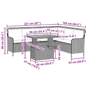 This garden sofa set is the perfect addition to your backyard, terrace, or patio, providing a comfortable and inviting space for chatting with family and friends or simply relaxing and enjoying the outdoors. Durable material: PE rattan, also known as poly rattan, is a strong, low-maintenance synthetic material that looks like natural rattan. It's lightweight, easy to clean, and commonly used for outdoor furniture due to its durability and weather-resistant properties.Comfortable seat experience: This outdoor furniture, complete with thickly padded cushions, offers a comfortable seating experience.Removable and washable cover: These seat cushions feature removable covers for easy washing and maintenance.Adjustable tabletop: The tabletop can be lifted to make the table higher, which transforms the outdoor table from a coffee table to a dining table. It's perfect for having guests over or eating meals outside.Stable and easy-to-clean tabletop: This garden table has an acacia wood top that is sturdy, durable, and easy to clean with a damp cloth. Good to know:To make sure your outdoor furniture stays beautiful, we recommend protecting it with a waterproof cover.