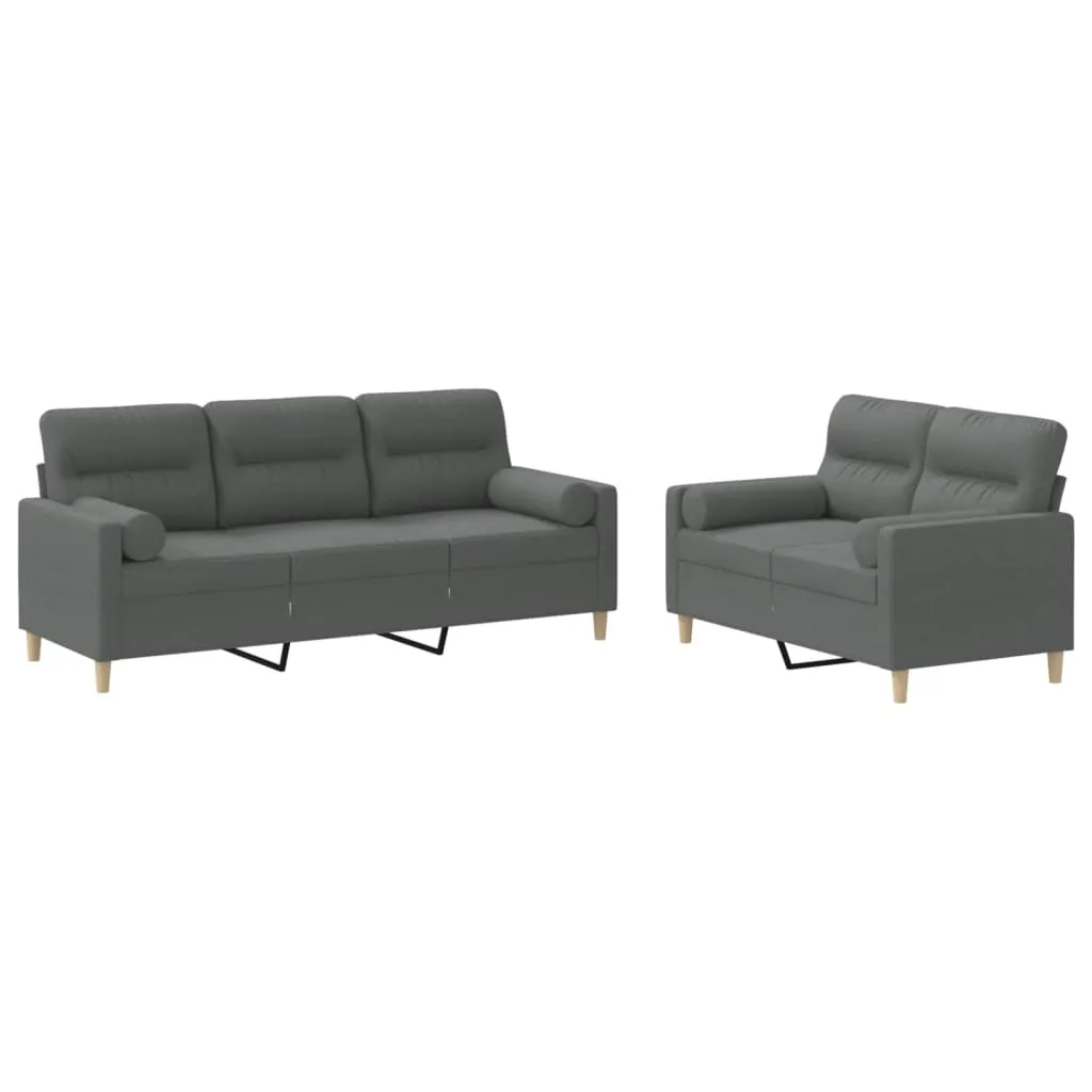 This sofa set is an excellent place for chatting, reading, watching TV or just relaxing. It is meant to be a focal point in your home. Durable fabric: The fabric features a simple and clean look while remaining breathable and long-lasting.Sturdy and stable frame: The plywood and metal frame of the sofa seating ensures sturdiness and stability.Comfortable seat experience: The sofa is highly comfortable with the thickly padded seat and armrests.Practical roll pillows: These cylinder pillows not only spruce up your decor, but can also add extra comfort when you are seated or lying.