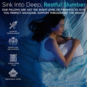 PREMIUM QUALITY: Sleep on premium quality sleeping pillows that are made under the highest standards with high-end materials. When the time comes, simply throw them in the washing machine (cold gentle cycle) and dryer (tumble dry low) with your other clothes and enjoy easy maintenance.