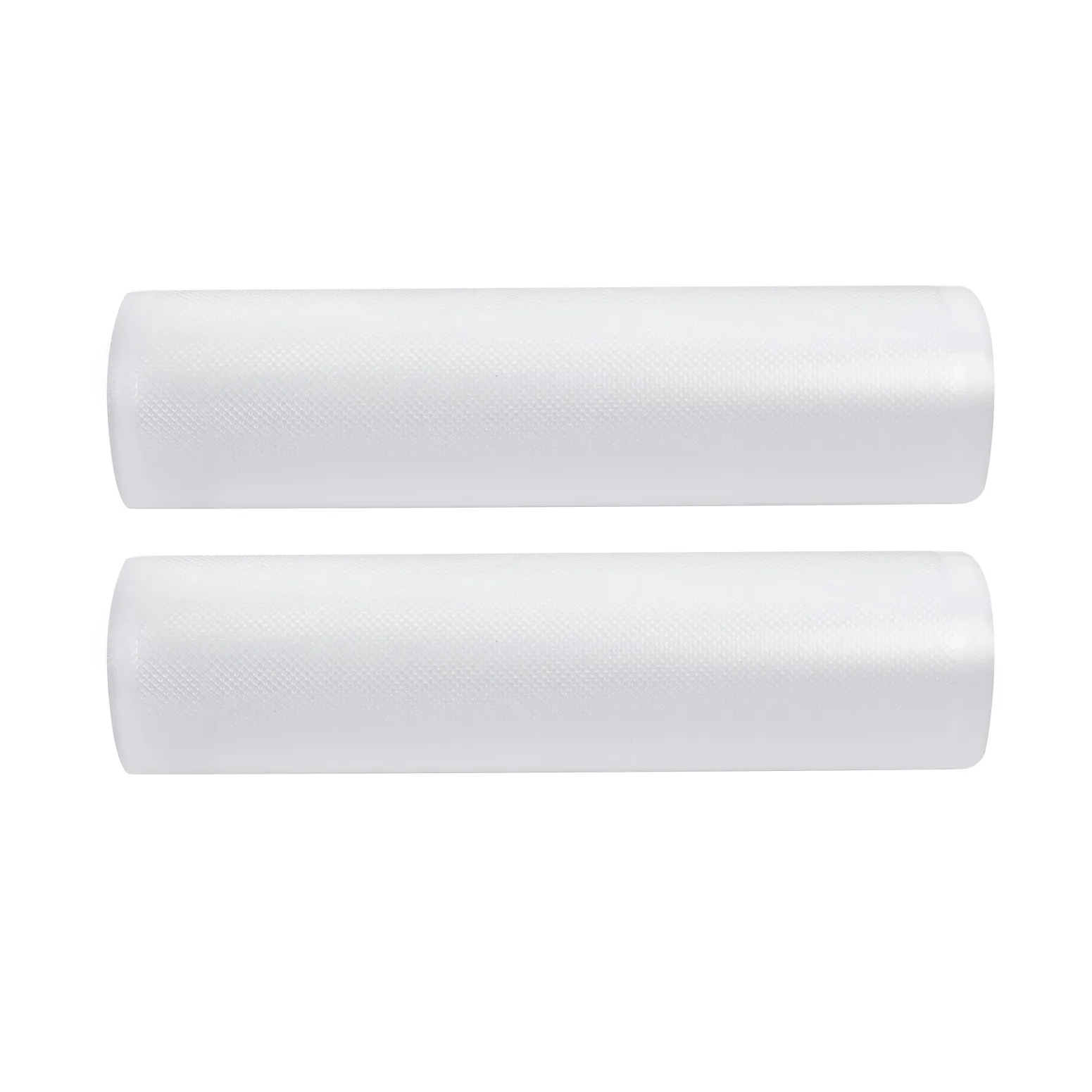 These two rolls of food vacuum sealer bags are perfect for keeping your food fresh for longer! The bags are designed to prevent spoilage by extracting all the air from inside the bag. Made from safe and odourless materials, these bags are tough and not easy to tear. The multi-layer bag design ensures maximum air extraction and is suitable for fruits, meat, cereals, vegetables, and more. The bags are compatible with most vacuum sealer machines, ensuring a strong seal and no air leakage. The diamond-shaped embossing makes them resistant to high temperatures, and they can be refrigerated and frozen. However, they cannot be heated in the microwave; only slowly heat the bags in water. The temperature range for use is -40 to 90 Celsius degrees. Reduce your food waste and keep your fridge stocked with our vacuum food sealer bags.
