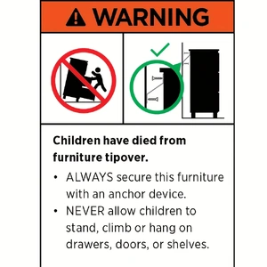 - NEVERallow children to stand, climb or hang on drawers, doors, or shelves.