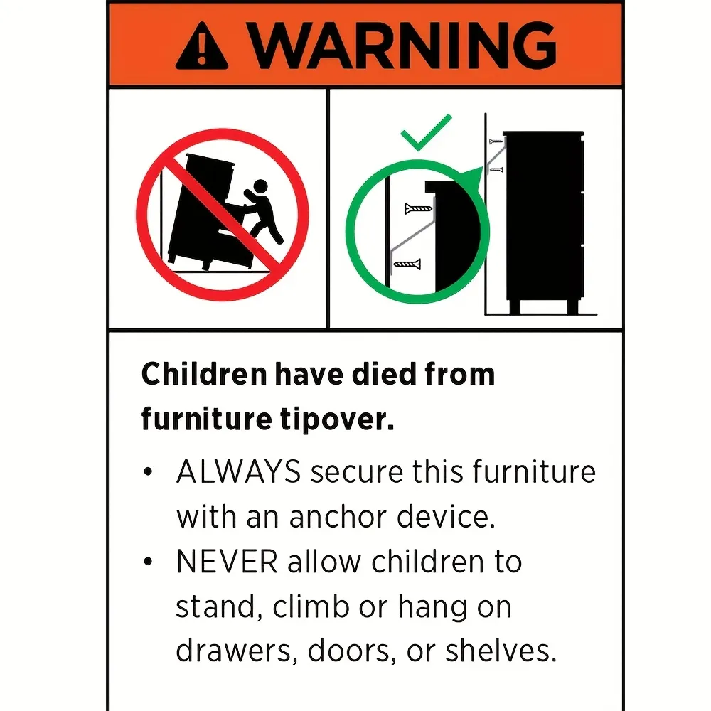 - NEVERallow children to stand, climb or hang on drawers, doors, or shelves.