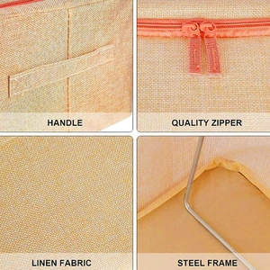 Versatile Metal Frame Storage Box, the perfect solution for your storage needs. These bins are made from high-quality linen fabric, which not only adds a touch of elegance to your closet but also provides durability and longevity. With their ideal dimensions, they fit most home storage space, maximizing your storage space.