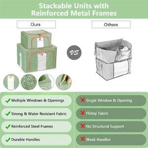 Say goodbye to flimsy storage solutions with these closet organizer. The metal frame integrated into each storage box provides exceptional stability and strength, ensuring that the bins maintain their shape and hold up to everyday use. Whether you're storing books, toys, clothes, or any other household items, you can trust these baskets to withstand the weight and keep everything organized.