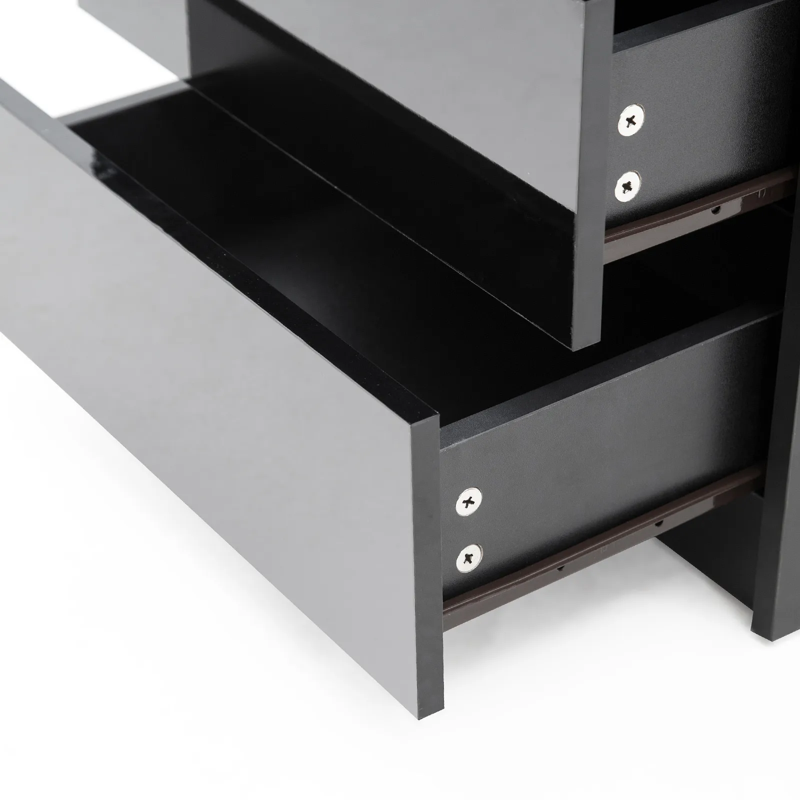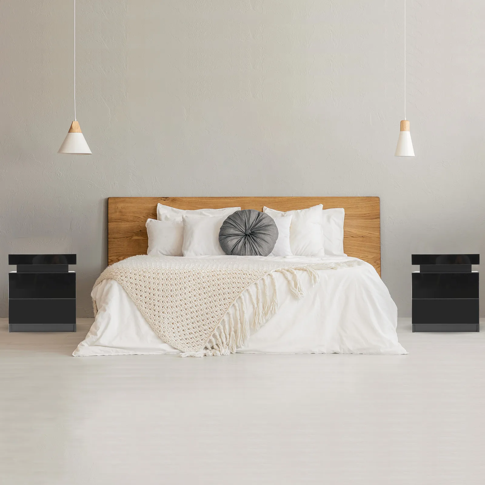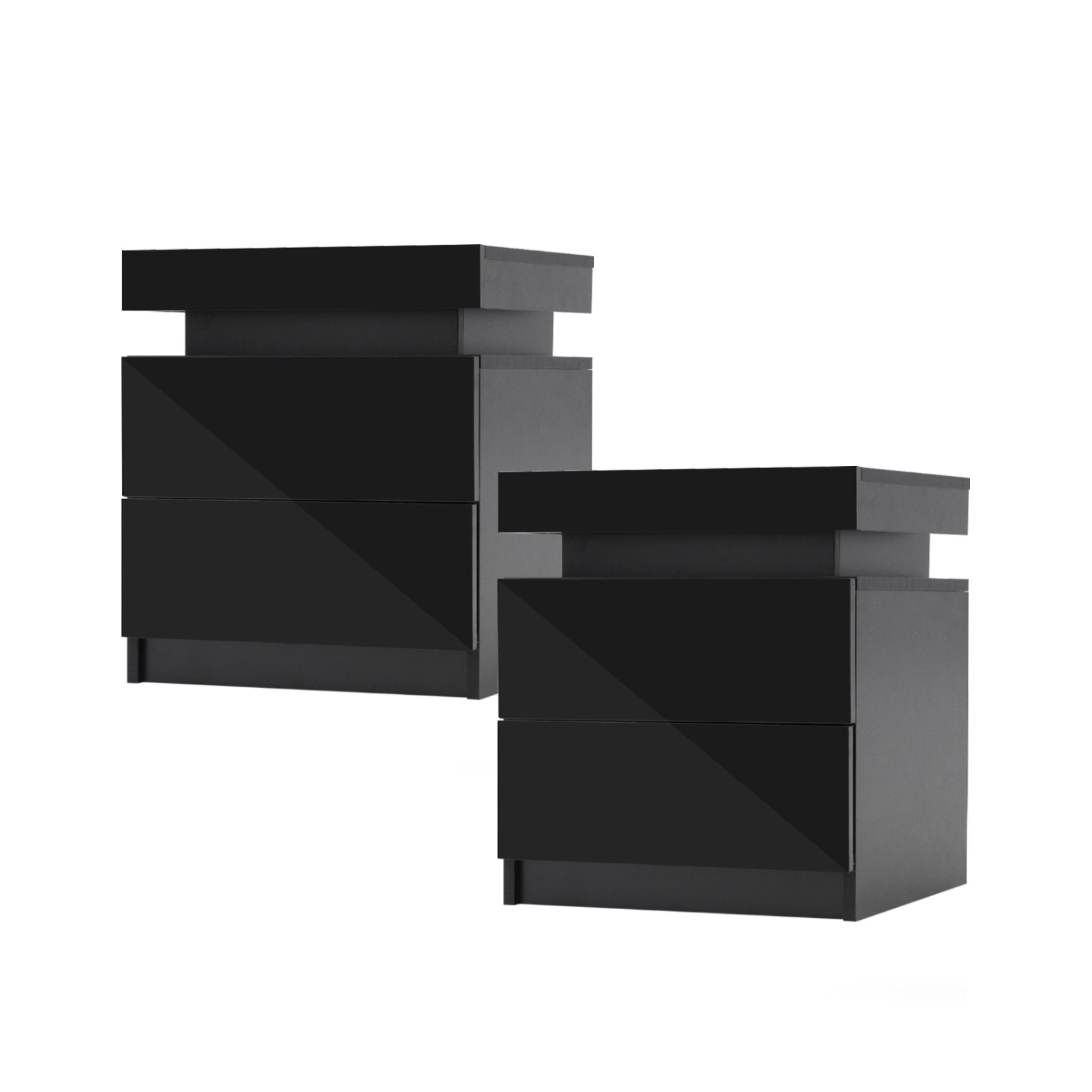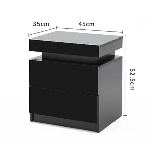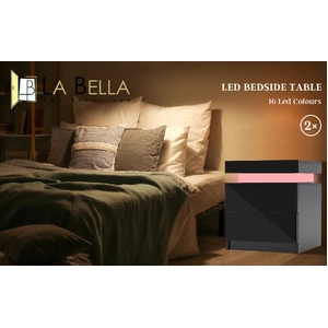 La Bella 2 Set Bedside Table 2 Drawers RGB LED Bedroom Cabinet Nightstand Gloss AURORA - Black