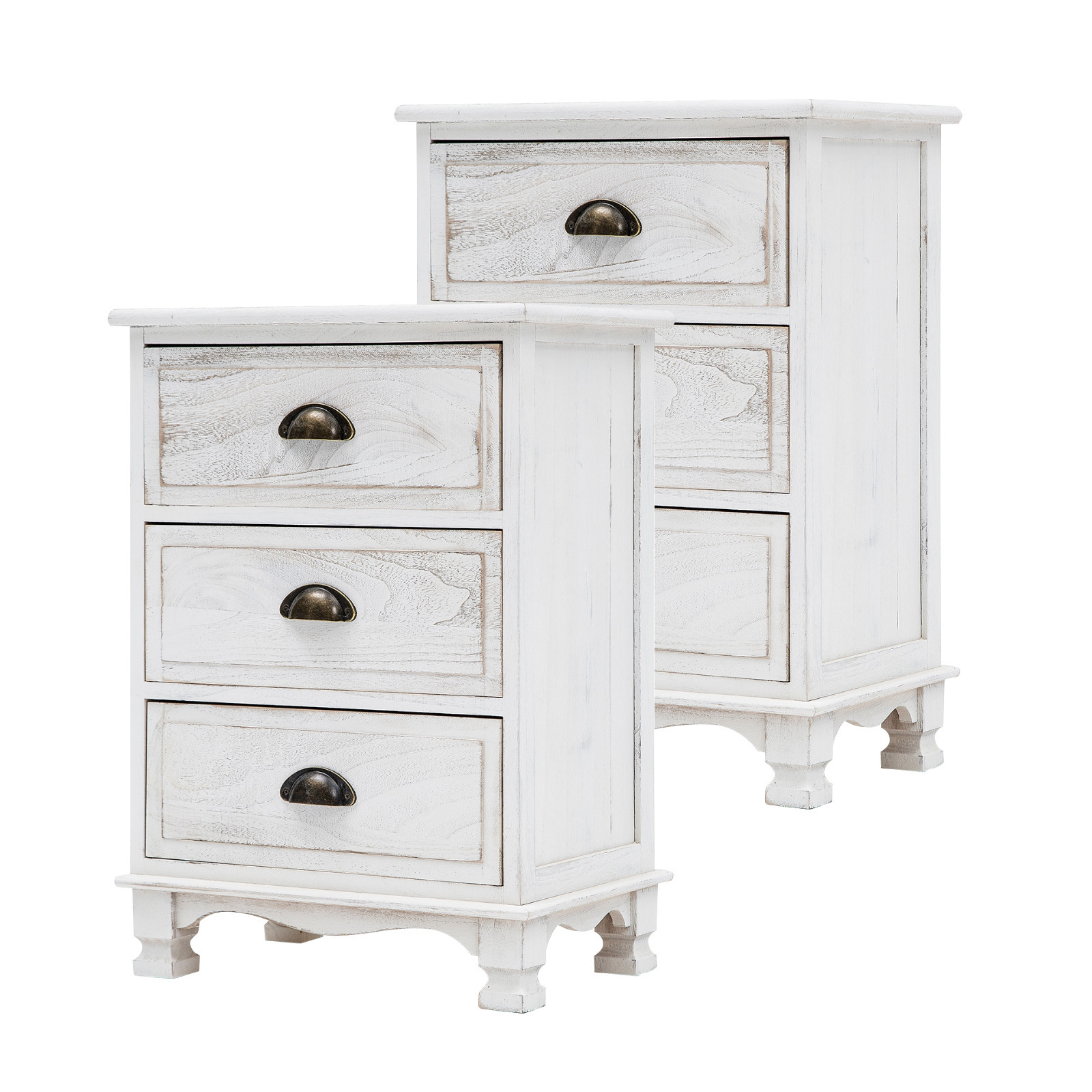 La Bella 2 Set Bedside Table 3 Drawer Vintage Side Table Storage Cabinet Bedroom CLARA - White