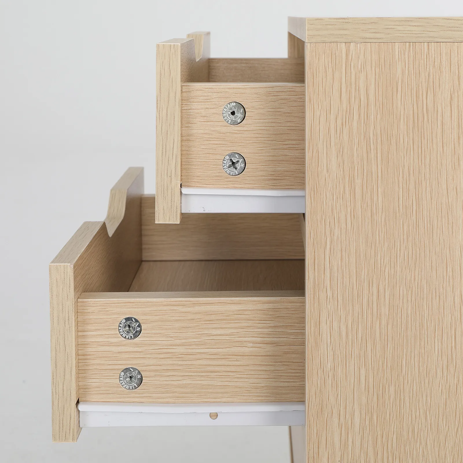 Crafted from environmentally friendly 15mm thick E1 MDF board, which is moisture resistance, sturdy, and durable. It also features gorgeous pine wood splayed legs.