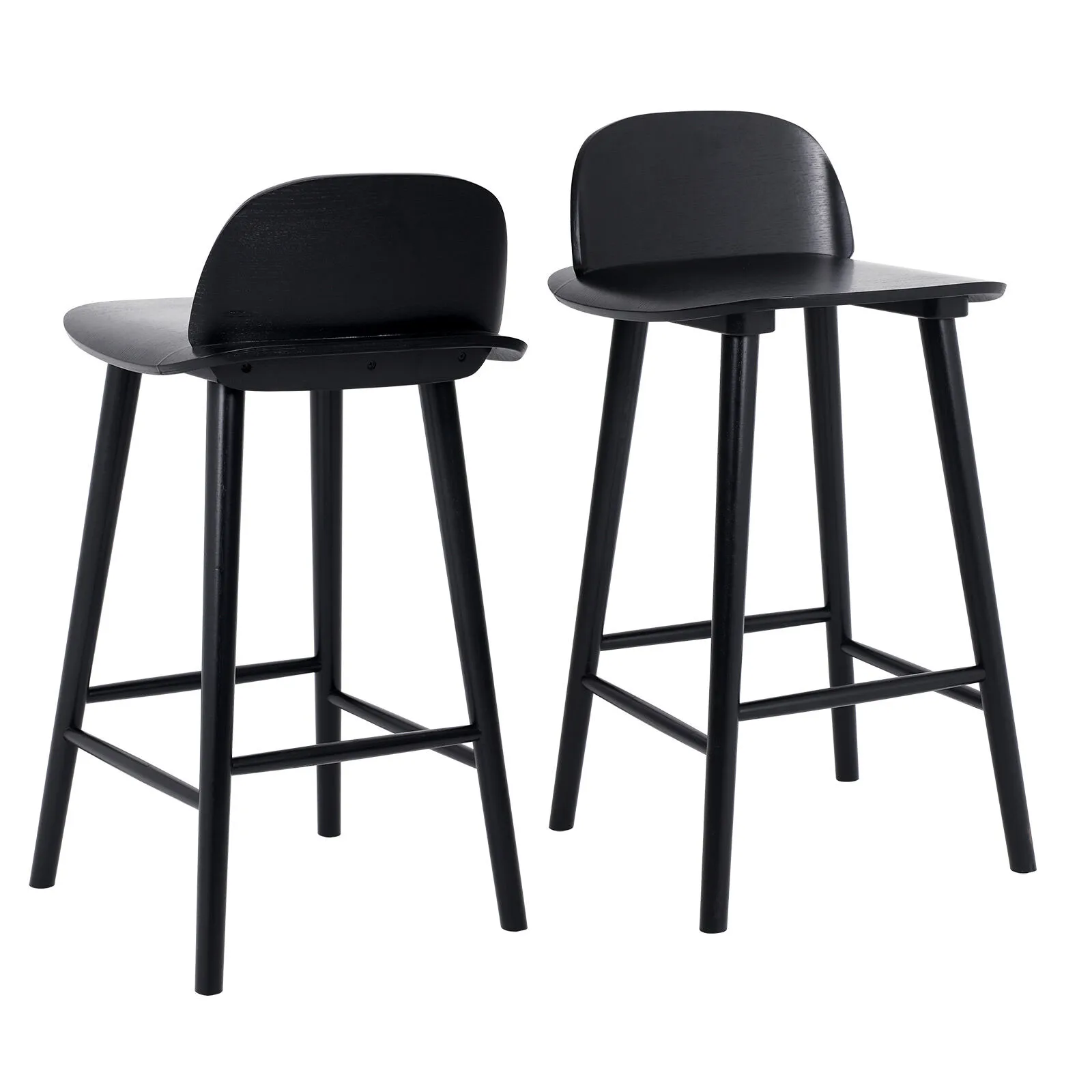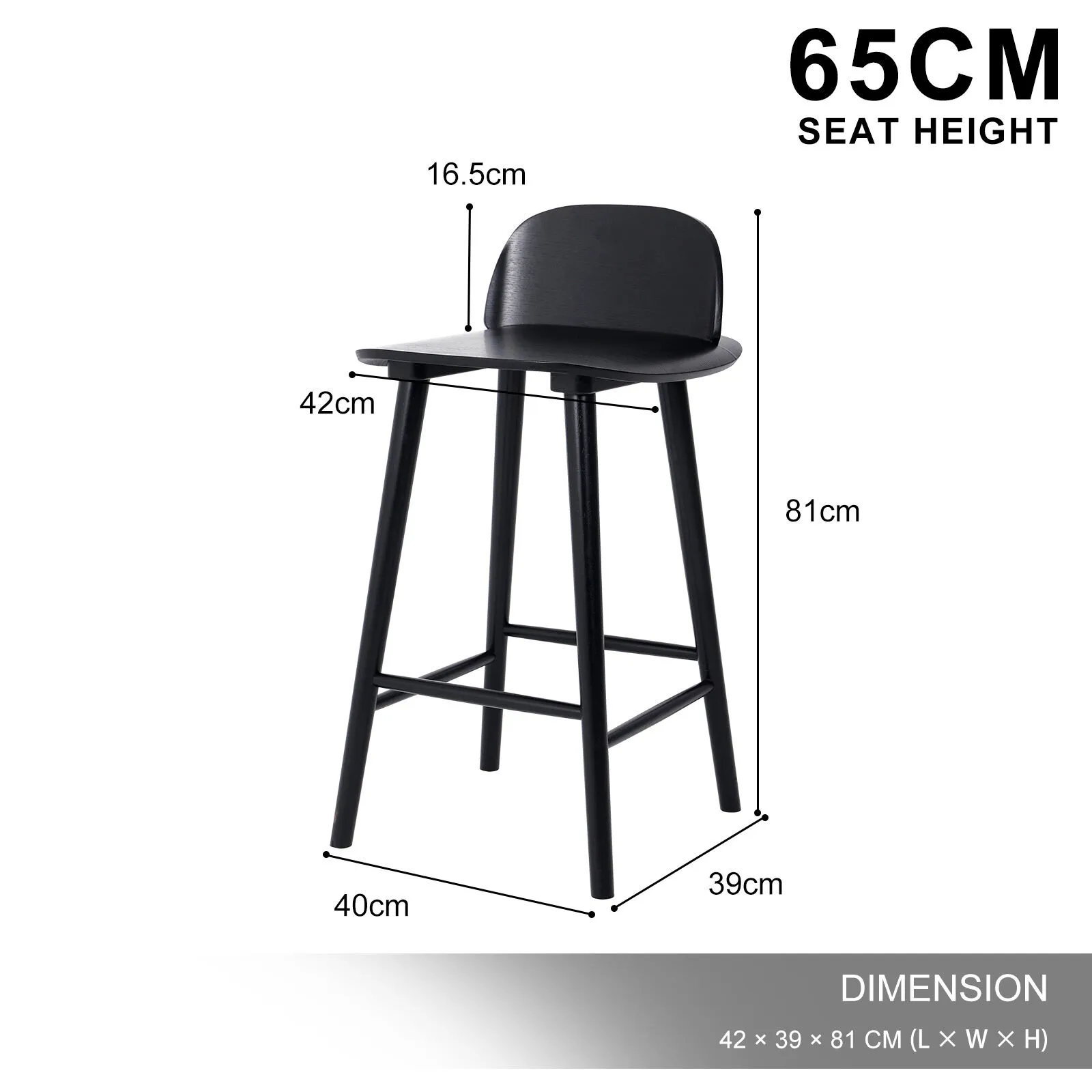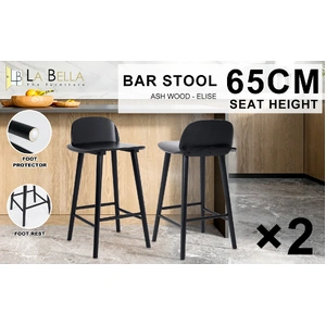 La Bella 2 Set Wooden Bar Stool 65cm ELISE Ash Wood Counter Kitchen Barstools Dining Chair - Black