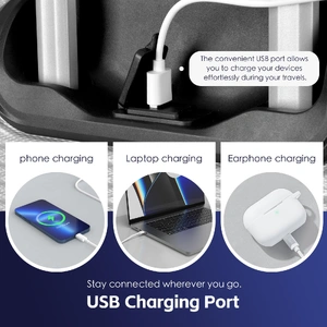 USB Charging Port: Stay connected while traveling by charging your devices with the convenient USB port.