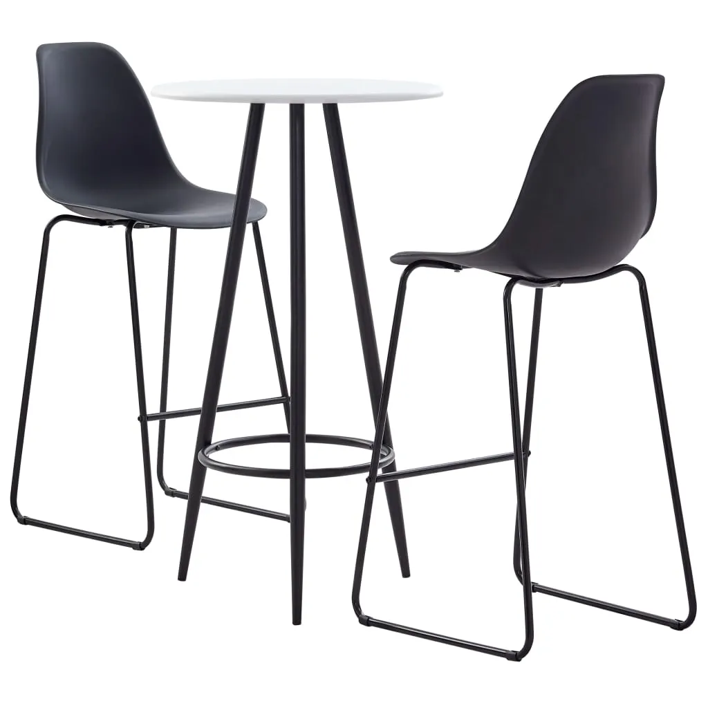 Featuring a modern and contemporary design, our bar set is perfect to go with any modern homes, gardens, bars, pubs, or restaurants. Its clean and contemporary design will complement any interior decor. The tabletop is made of MDF which is easy to clean. The powder-coated steel frame adds to the bar table's stability and sturdiness. The pub chairs have an ergonomically designed seat with integrated backrest in a modern, curved look. Additionally, they are easy to assemble. Our bar chair set is ideal for enjoying a few sips of wine in the bar, grabbing a bite at the counter, or for use as extra seats when you invite guests over. Delivery includes a bar table and 2 bar chairs.