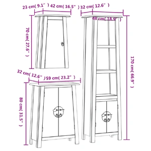 This bathroom furniture set is an excellent addition to your bathroom, giving it a tidy and striking appearance! Solid pine wood: Solid pine wood is a beautiful natural material. Pine wood has a straight grain, and the knots give the material its signature, rustic look.Ample storage space: The bath cabinet offers ample space to easily accommodate your essential toiletries and bath items such as soaps, shampoo, toothpaste, etc.Convenient handles: The metal handles allow you to open the bathroom storage cabinet easily to get what you want.Wall-mounted function: The bathroom wall cabinet can be wall-mounted for extra storage space. That way, you can maximise your floor space and keep the area clean. Warning:To prevent it from tipping over, this product must be used with the wall attachment device (not provided). Good to know:Each item is unique with variations in colours and grains. The delivery is random, ensuring the exclusivity and individuality of your product.