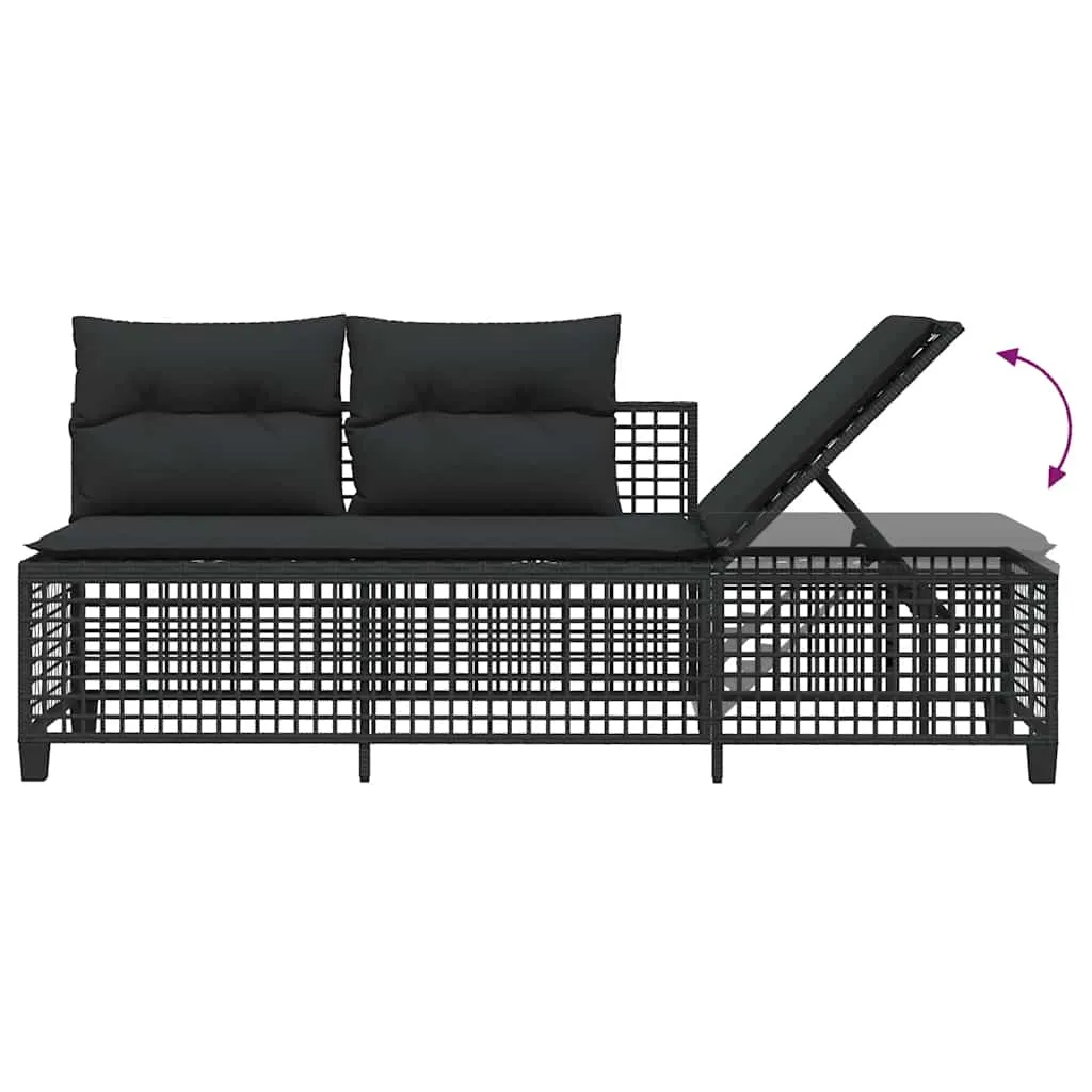 This garden sofa set is the perfect addition to your backyard, terrace, or patio, providing a comfortable and inviting space for chatting with family and friends or simply relaxing and enjoying the outdoors. Durable material: PE rattan, also known as poly rattan, is a strong, low-maintenance synthetic material that looks like natural rattan. It's lightweight, easy to clean, and commonly used for outdoor furniture due to its durability and weather-resistant properties.Adjustable side seat: The small side seat panel of each sofa can be lifted up, turning the sofa into a comfortable lounger for relaxation. The adjustable seat can be set to 5 different levels to meet your needs for reading, sunbathing, or napping.Comfortable seat experience: This outdoor furniture, complete with thickly padded cushions, offers a comfortable seating experience.Glass tabletop: The outdoor table's top is made from strong and durable tempered glass, making it easy to clean with a damp cloth and adding a touch of elegance to your outdoor space.Robust and stable frame: The powder-coated steel frame ensures that the garden furniture is strong and stable for daily outdoor use. Good to know:To make sure your outdoor furniture stays beautiful, we recommend protecting it with a waterproof cover.