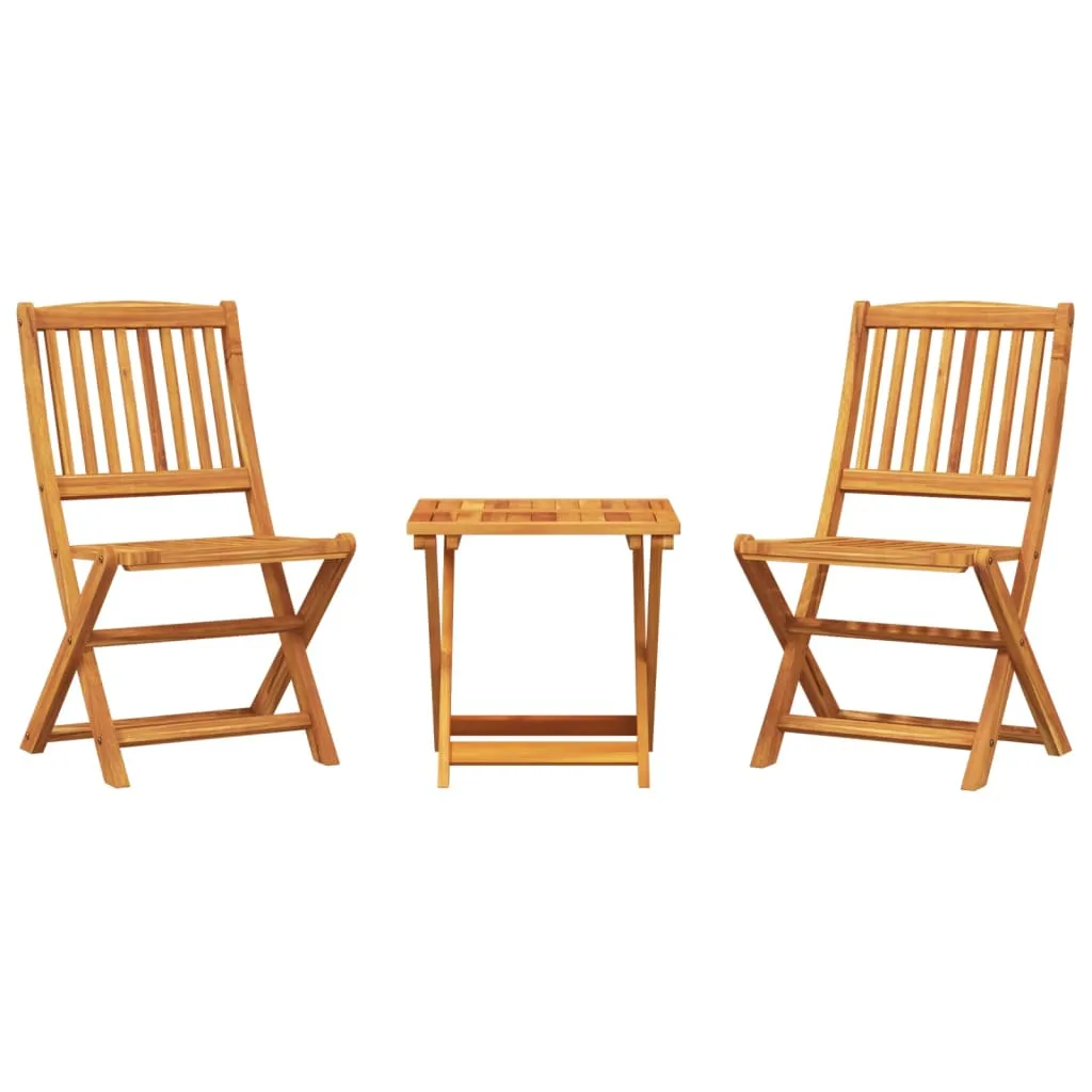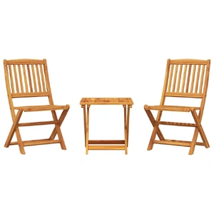 Enjoy your leisure time with your family and friends around this wooden garden set! Solid acacia wood: Solid acacia wood is a beautiful natural material. Acacia wood is a tropical hardwood, which is dense, sturdy, and durable.Foldable design: The outdoor set can be folded away for easy movement and transportation. You can store it with less space when not in use.Stable top: The stable top of the dining table is ideal for placing your drink or any other necessity you need close at hand.Comfortable seating experience: Featuring a backrest, the outdoor chair gives you the utmost comfort.Easy-to-clean surface: The oil-finished surface makes this folding table easy to clean with a damp cloth.Wide applications: The set has a timeless design and suits almost any decor. You can place it on your home or any commercial patio, garden, balcony, and so on. Good to know:To make sure your outdoor furniture stays beautiful, we recommend protecting it with a waterproof cover.