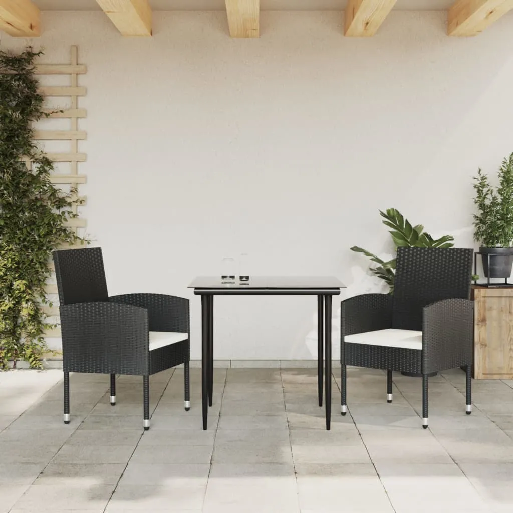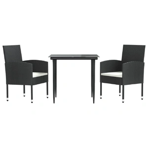 Enjoy a nice meal or afternoon tea in your outdoor space with this garden dining set! Featuring an elegant design, it will become the focal point of your garden and patio! Durable material: Poly rattan is an exceptional resistance material and durable in different weather conditions. It also needs little maintenance.Sturdy frame: This garden table and chair are constructed with a steel frame, which ensures sturdiness and stability.Practical tabletop: The smooth tabletop of the dinner table is made of tempered glass which is easy to clean with a damp cloth. Additionally, the sturdy tabletop is perfect for placing meals, drinks, and other decorative items.Comfortable seat experience: The thick and removable seat cushions are included for your comfort. Good to know:To make sure your outdoor furniture stays beautiful, we recommend protecting it with a waterproof cover.