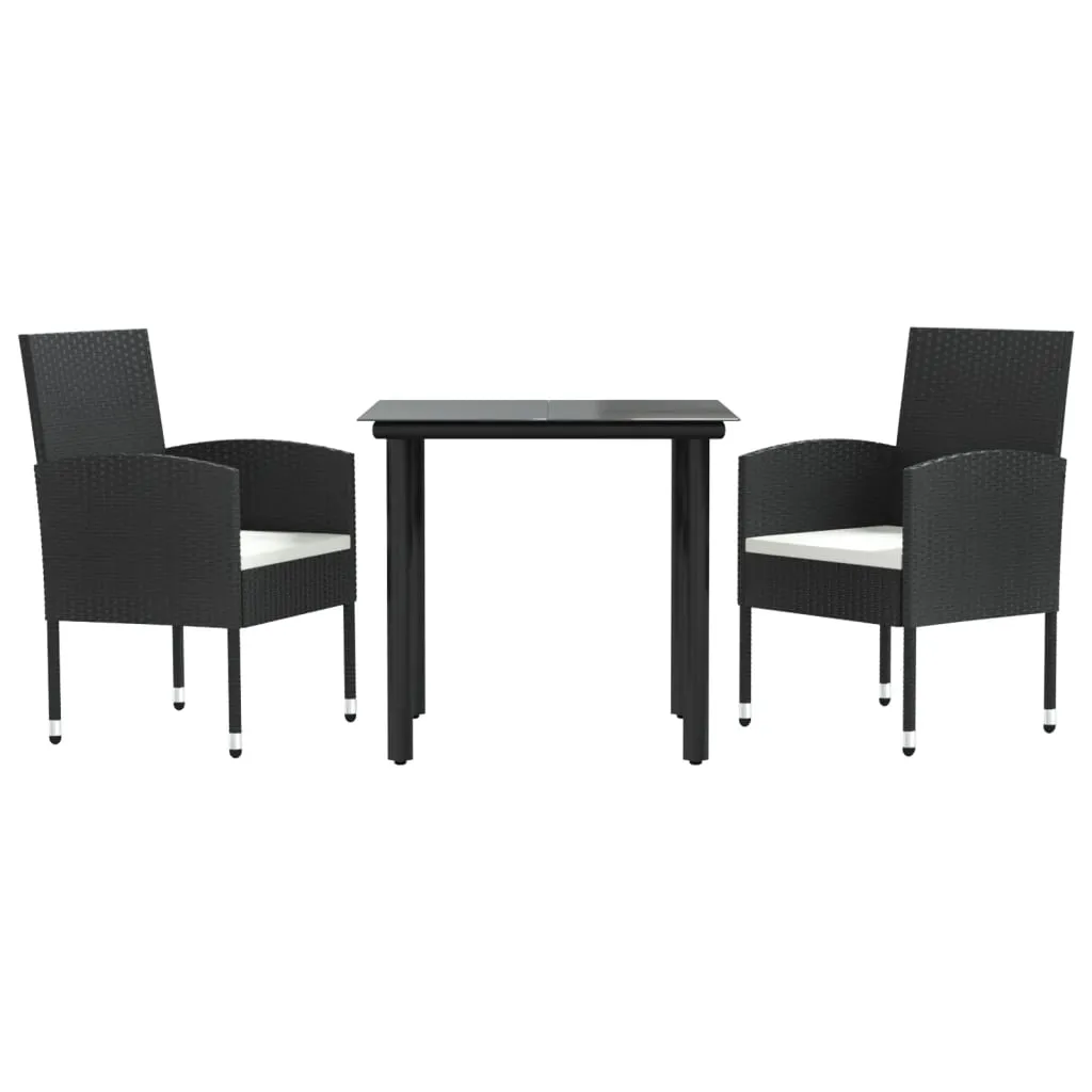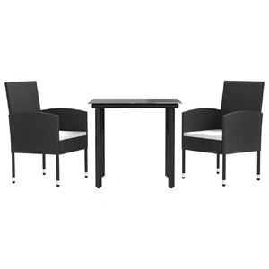Enjoy a nice meal or afternoon tea in your outdoor space with this garden dining set! Featuring an elegant design, it will become the focal point of your garden and patio! Durable material: Poly rattan is an exceptional resistance material and durable in different weather conditions. It also needs little maintenance.Sturdy frame: This garden table and chair are constructed with a steel frame, which ensures sturdiness and stability.Practical tabletop: The smooth tabletop of the dinner table is made of tempered glass which is easy to clean with a damp cloth. Additionally, the sturdy tabletop is perfect for placing meals, drinks, and other decorative items.Comfortable seat experience: The thick and removable seat cushions are included for your comfort. Good to know:To make sure your outdoor furniture stays beautiful, we recommend protecting it with a waterproof cover.