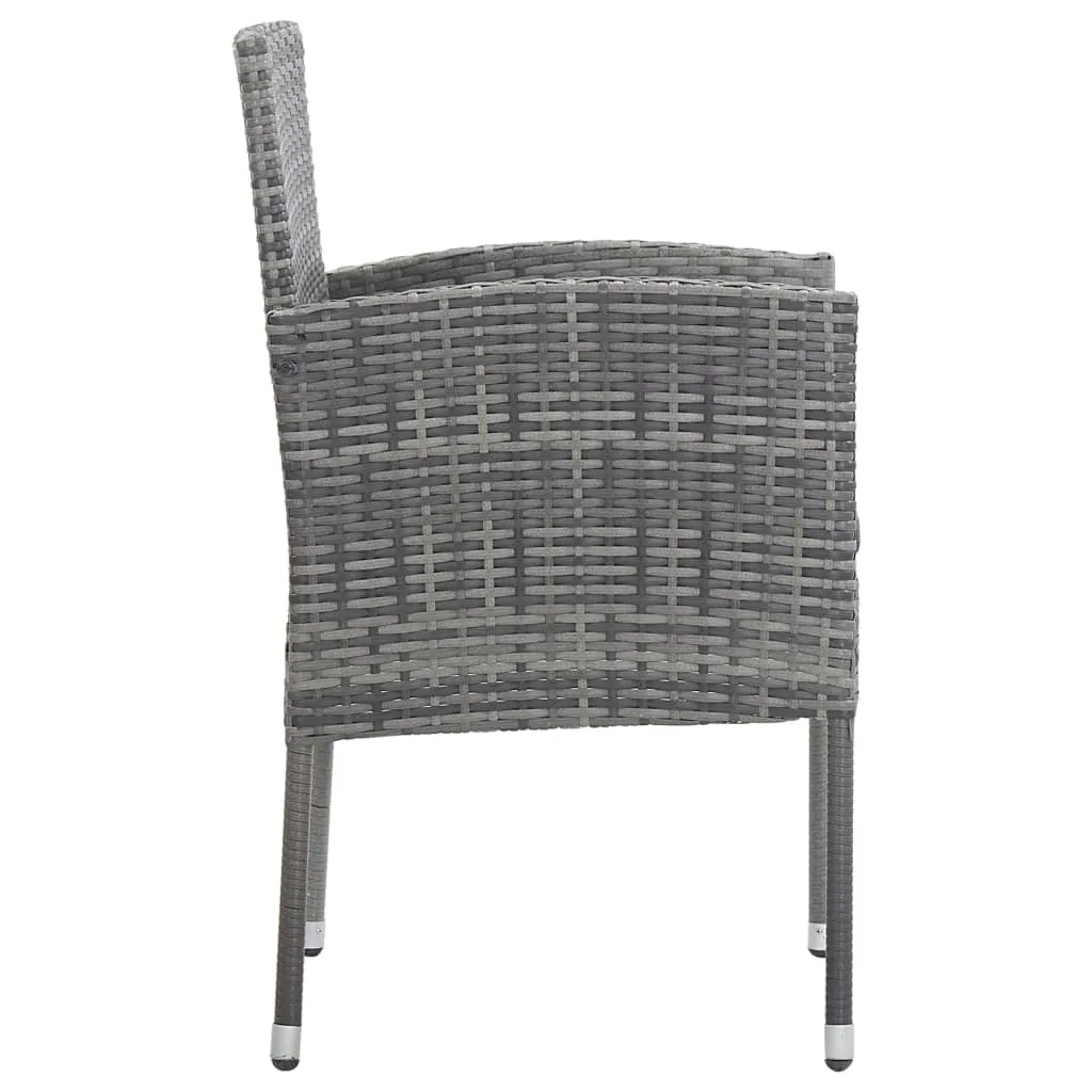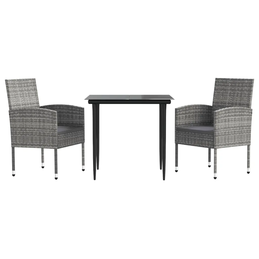 Enjoy a nice meal or afternoon tea in your outdoor space with this garden dining set! Featuring an elegant design, it will become the focal point of your garden and patio! Durable material: Poly rattan is an exceptional resistance material and durable in different weather conditions. It also needs little maintenance.Sturdy frame: This garden table and chair are constructed with a steel frame, which ensures sturdiness and stability.Practical tabletop: The smooth tabletop of the dinner table is made of tempered glass which is easy to clean with a damp cloth. Additionally, the sturdy tabletop is perfect for placing meals, drinks, and other decorative items.Comfortable seat experience: The thick and removable seat cushions are included for your comfort. Good to know:To make sure your outdoor furniture stays beautiful, we recommend protecting it with a waterproof cover.