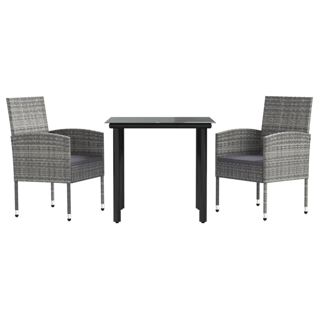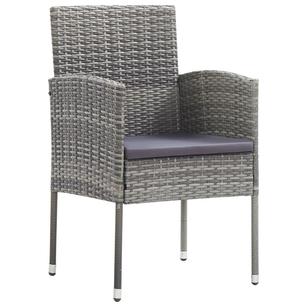 Enjoy a nice meal or afternoon tea in your outdoor space with this garden dining set! Featuring an elegant design, it will become the focal point of your garden and patio! Durable material: Poly rattan is an exceptional resistance material and durable in different weather conditions. It also needs little maintenance.Sturdy frame: This garden table and chair are constructed with a steel frame, which ensures sturdiness and stability.Practical tabletop: The smooth tabletop of the dinner table is made of tempered glass which is easy to clean with a damp cloth. Additionally, the sturdy tabletop is perfect for placing meals, drinks, and other decorative items.Comfortable seat experience: The thick and removable seat cushions are included for your comfort. Good to know:To make sure your outdoor furniture stays beautiful, we recommend protecting it with a waterproof cover.