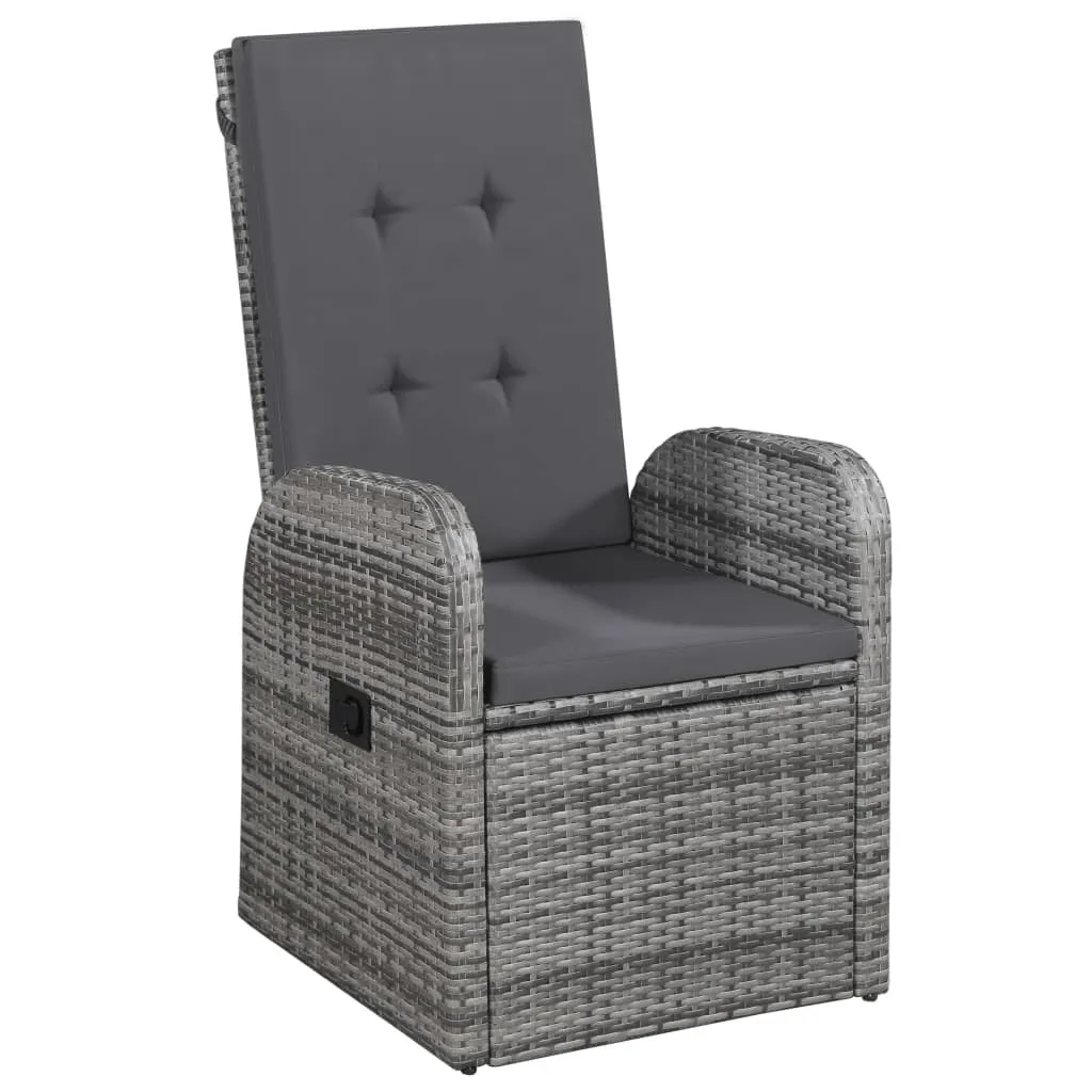 Create a compelling and cohesive aesthetic in your outdoor space with this garden dining set! The dinner table is made of solid acacia wood with an oil finish, which makes it stable, durable and easy to maintain. Featuring a powder-coated steel frame covered with weather-resistant PE rattan, these dining chairs are sturdy and easy to clean. The backrest will recline by pulling the button on the side. Thanks to the lightweight construction, the chairs are easy to move. It is also delivered with highly comfortable, thickly-padded cushions for the ultimate comfort. The low-maintenance polyester covers can also be removed and washed. Important note: We recommend covering the dining set during rain, snow and frost for its best service to last.