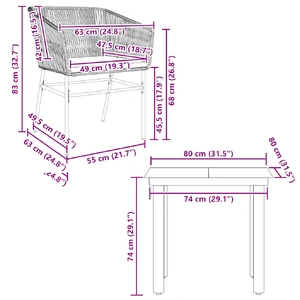 This garden dining set is a great choice for al fresco dining or just relaxing in the garden, backyard, or on the patio. Durable material: PE rattan, also known as poly rattan, is a strong, low-maintenance synthetic material that looks like natural rattan. It's lightweight, easy to clean, and commonly used for outdoor furniture due to its durability and weather-resistant properties.Robust and stable frame: The powder-coated steel frame is strong, stable, durable, and resistant to corrosion and harsh weather, ensuring long-lasting performance.Practical backrest and armrest: This garden chair features a backrest and two armrests that offer optimal support and comfort for users.Removable and washable cover: These seat cushions feature removable covers for easy washing and maintenance.Glass tabletop: The outdoor table's top is made from strong and durable tempered glass, making it easy to clean with a damp cloth and adding a touch of elegance to your outdoor space. Good to know:To make sure your outdoor furniture stays beautiful, we recommend protecting it with a waterproof cover.