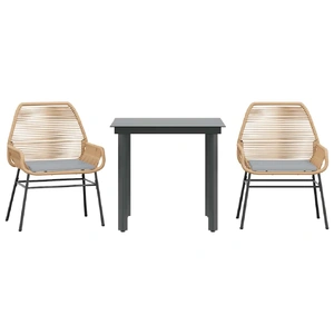 This garden dining set is a great choice for al fresco dining or just relaxing in the garden, backyard, or on the patio. Durable material: PE rattan, also known as poly rattan, is a strong, low-maintenance synthetic material that looks like natural rattan. It's lightweight, easy to clean, and commonly used for outdoor furniture due to its durability and weather-resistant properties.Robust and stable frame: The powder-coated steel frame is strong, stable, durable, and resistant to corrosion and harsh weather, ensuring long-lasting performance.Practical backrest and armrest: This garden chair features a backrest and two armrests that offer optimal support and comfort for users.Removable and washable cover: These seat cushions feature removable covers for easy washing and maintenance.Glass tabletop: The outdoor table's top is made from strong and durable tempered glass, making it easy to clean with a damp cloth and adding a touch of elegance to your outdoor space. Good to know:To make sure your outdoor furniture stays beautiful, we recommend protecting it with a waterproof cover.