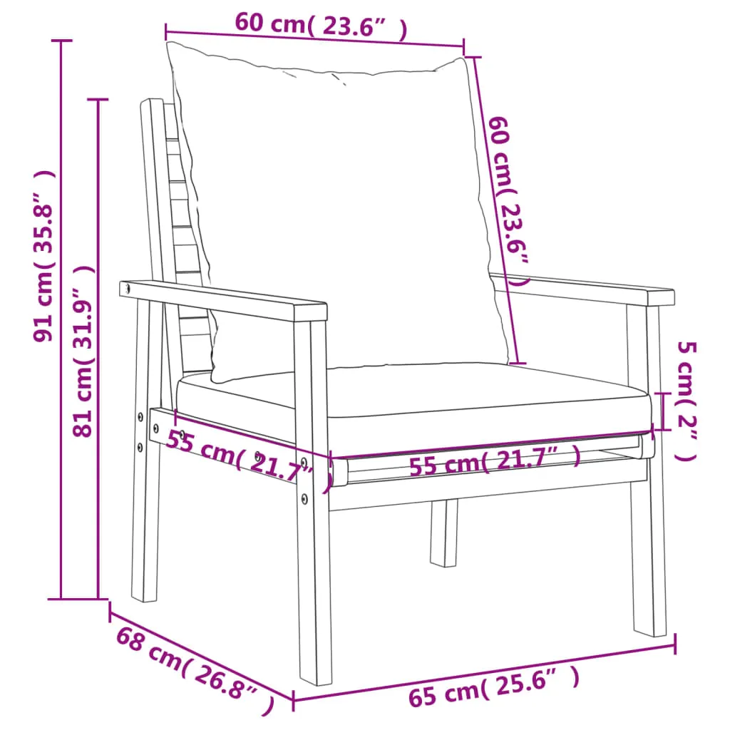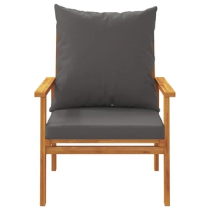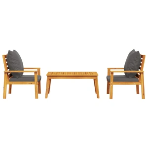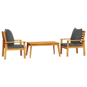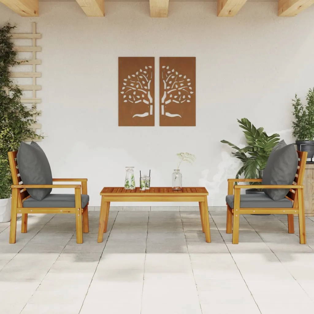 This wooden garden lounge set has an elegant design and is a great choice for relaxing and enjoying in the garden or patio. Solid acacia wood: The outdoor lounge set is made of solid acacia wood for sturdiness and stability. Solid acacia wood is a beautiful natural material. Acacia wood has beautiful wood grains make every piece of furniture unique and slightly different from each other.Comfortable seating experience: Featuring armrests and a backrest, the patio lounge set gives you the utmost comfort. Also, the thickly padded cushions provide comfort for your sitting time.Stable and easy-to-clean tabletop: This garden table has an acacia wood top that is sturdy, durable, and easy to clean with a damp cloth.Wide applications: The garden seating is perfect for any front porch, patio, backyard, lawn, garden, etc. Good to know:To make sure your outdoor furniture stays beautiful, we recommend protecting it with a waterproof cover.